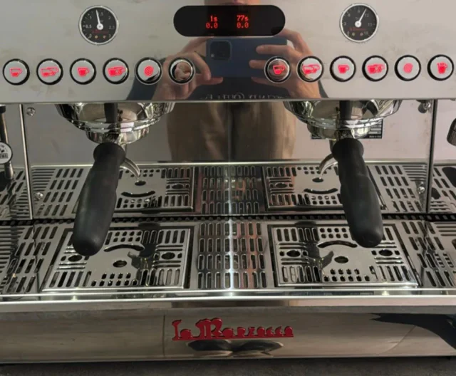 La Marzocco GB5 coffee maker with scales included in excellent condition, used only for exhibition.